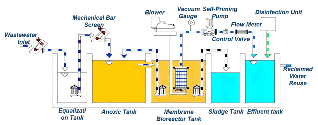SJY Membrane Bioreactor (MBR) System Advanced & Compact Solution for clean water in water-scarce areas like Central Asia. Combines membrane filtration & biology for top efficiency and reliability;Full solid-liquid separation meets strict standards—perfect for reuse in industry, cities, or farms;Separates water flow (HRT) from sludge hold time (SRT) to boost biomass and cut sludge by up to 90%.
